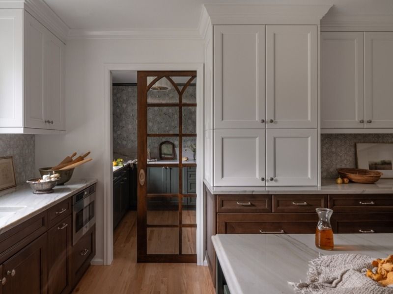 A home like this is all about warmth, function, and timeless detail. For this Woodinville project, we created cabinetry for a kitchen and prep space that balance beauty and everyday livability—pairing soft painted finishes, rich wood tones, moody built-ins, and thoughtful storage to create rooms that feel collected, welcoming, and made to be lived in.